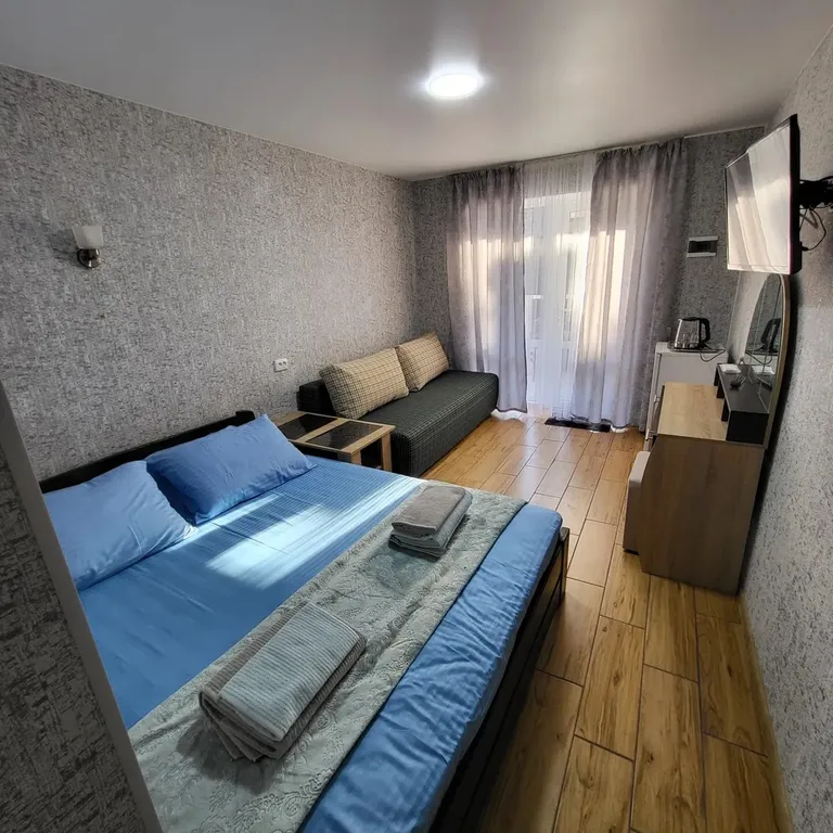 Понравилось всё хороший номер чистый всё работает. Хороший гостевой дом на улице большая кухня много посуды детская площадка беседки для посиделок мангал всё на любой вкус и цвет. Рекомендую