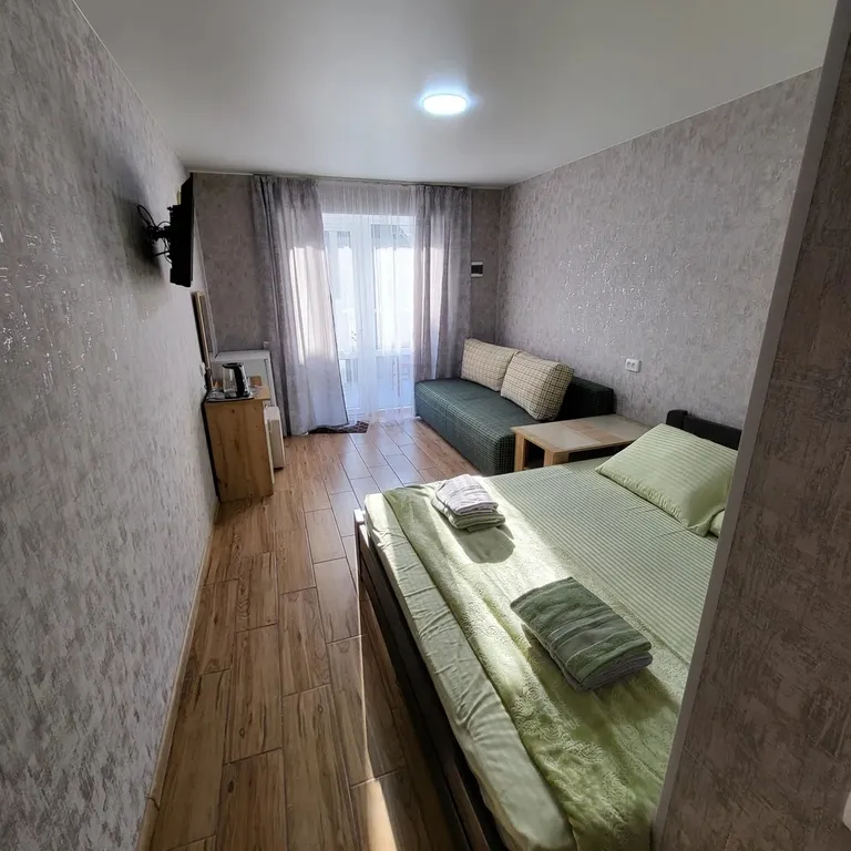 Номер отличный, чистый, с необходимым набором для отдыхающих: набор для чистки зубов, шампунь, гель для душа, тапочки, комплект полотенец. Свой санузел: туалет, душ. Немаловажно есть вай-фай. Рядом пляж. Магазины с продуктами возле автовокзала. Приветливые хозяева Виктория и Вадим. Ночевали одну ночь проездом в Крым. Рекомендую.